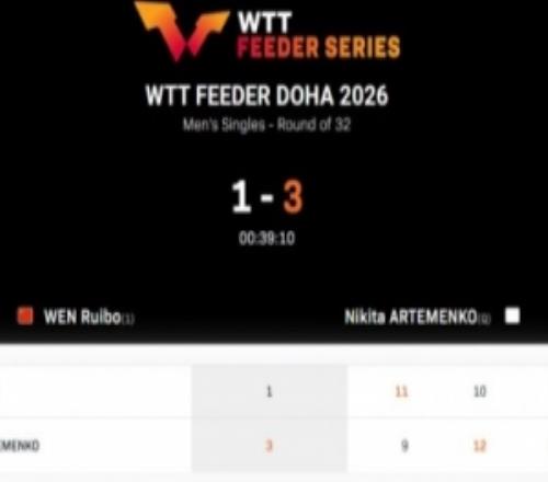 体育播报1月29日宣 2026WTT支线赛多哈站男单,温瑞博1-3不敌中立运动员尼基塔,止步首轮。本场比分:11-9、10-12...